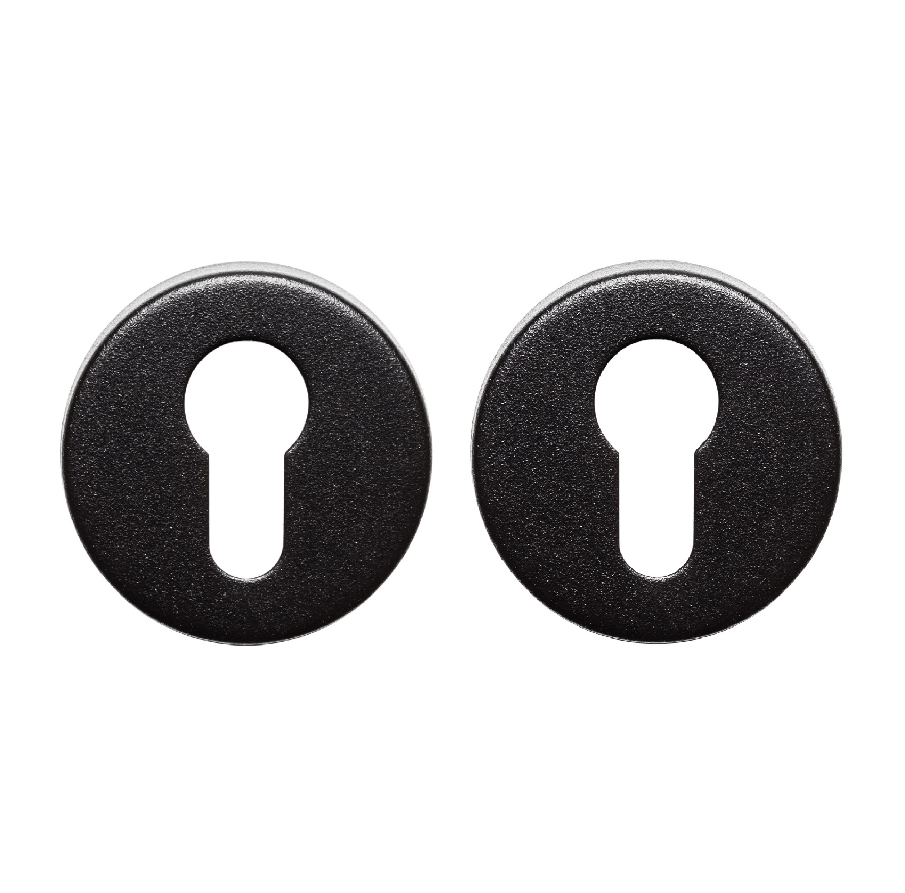 These matt black stainless steel cylinder rosettes are supplied in pairs in a round version with an opening for a cylinder lock.