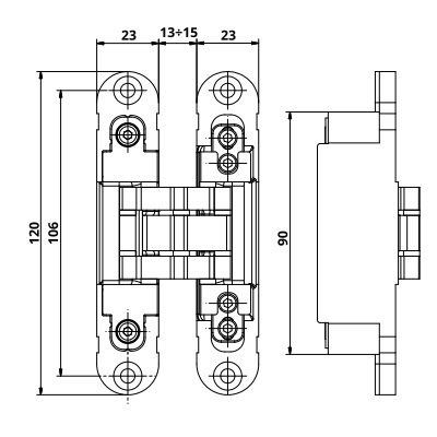 With this insert plate you can recess both the part that is visible from the hinge and the stepped part with almost any type of router and the associated 24mm copy ring.