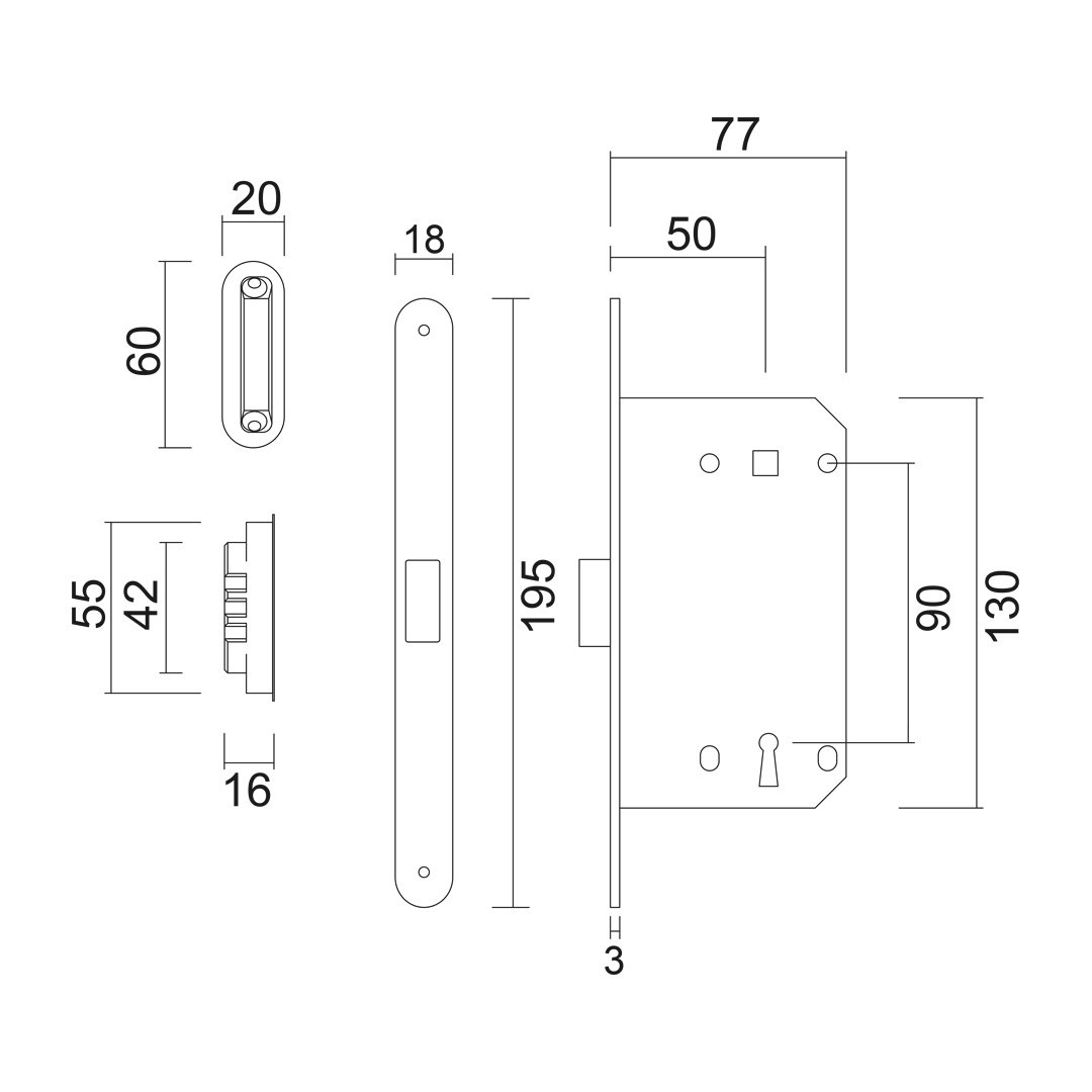 Inclusive Lock, strike plate, mounting material