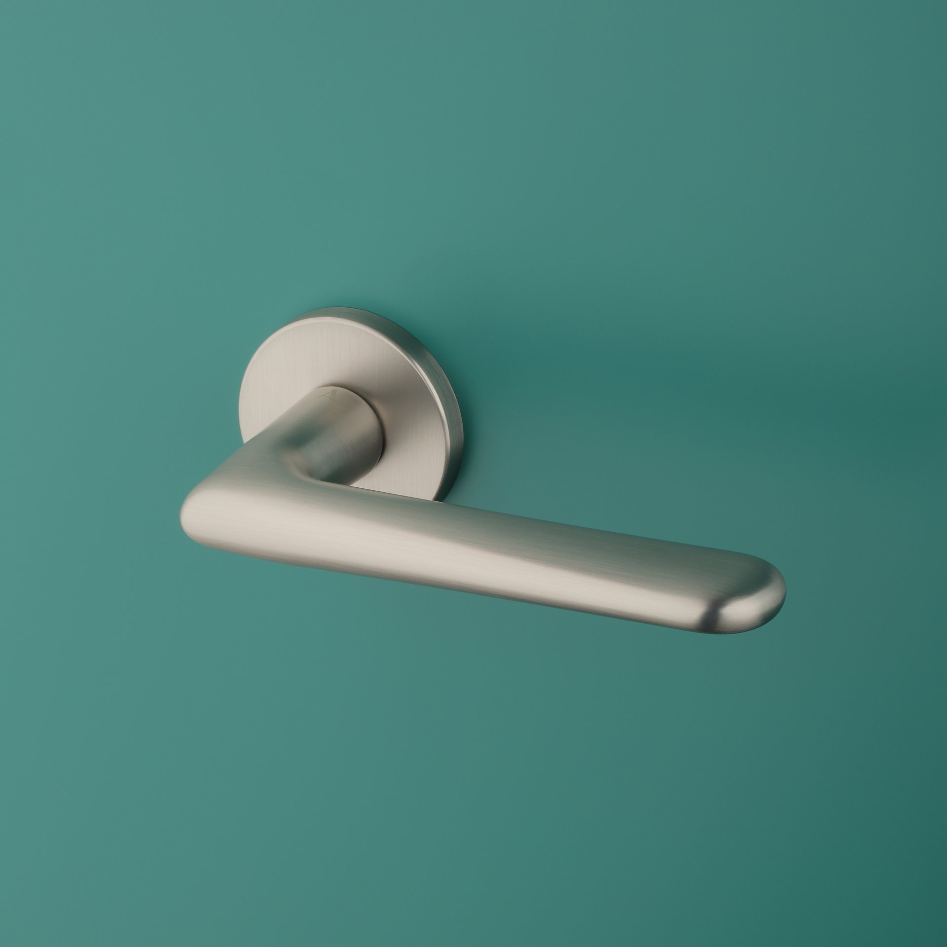 These matt nickel design door handles are spring-loaded and feature the Aprile logo.
