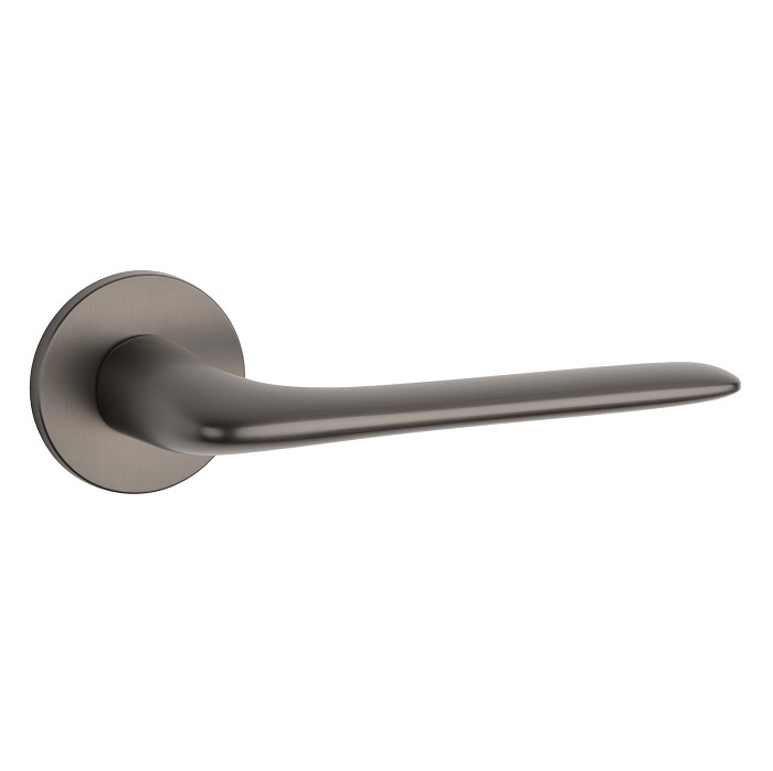 These beautiful designer door handles in graphite colour have a round and elegant design and are mounted on round rosettes Ø52mm.
