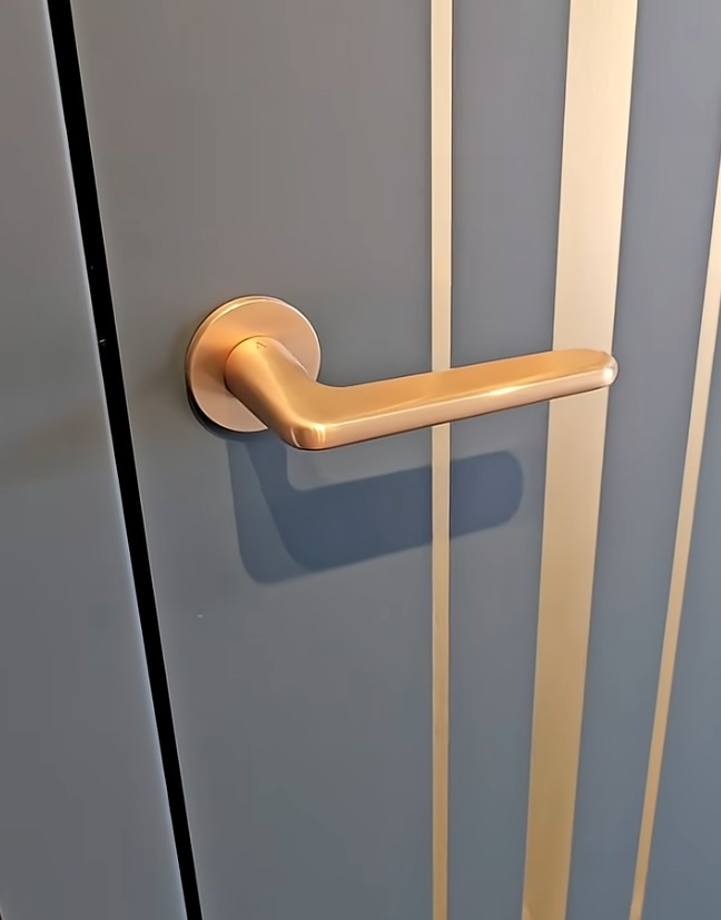 These high-quality matte gold door handles are mounted on ultra -thin rosettes just 5mm thick, making them look even more beautiful. In short, a high-quality designer door handle with a sleek finish.