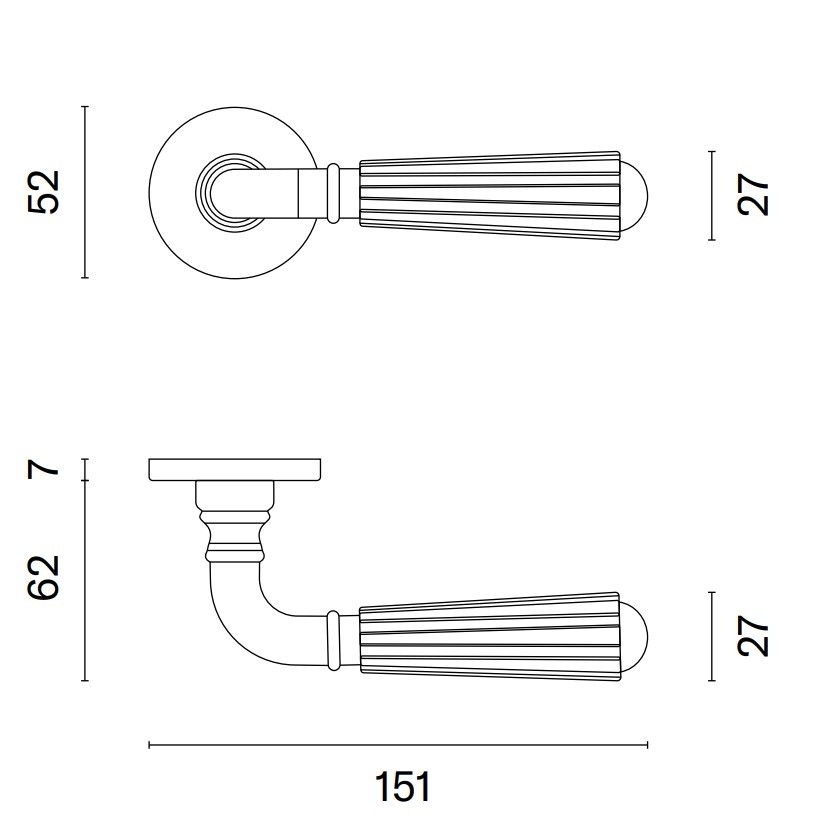 Aprile door handle UTRICA - Round with pear-shaped grip and horizontal motif, very finely finished.