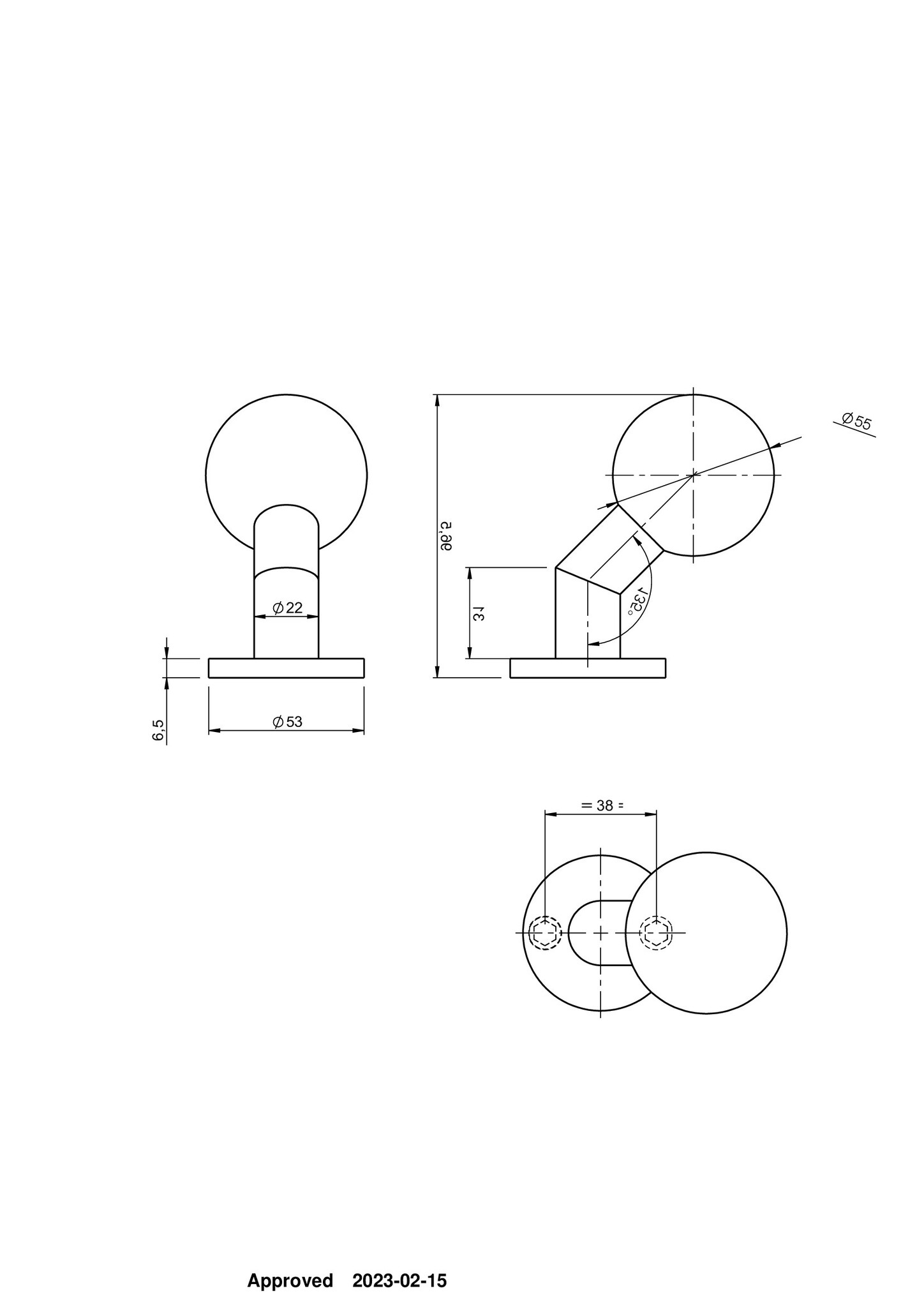 The knob is mounted on a sturdy steel base rosette Ø 53 x 6.5 mm and provided with a cover rosette for neat, invisible mounting.