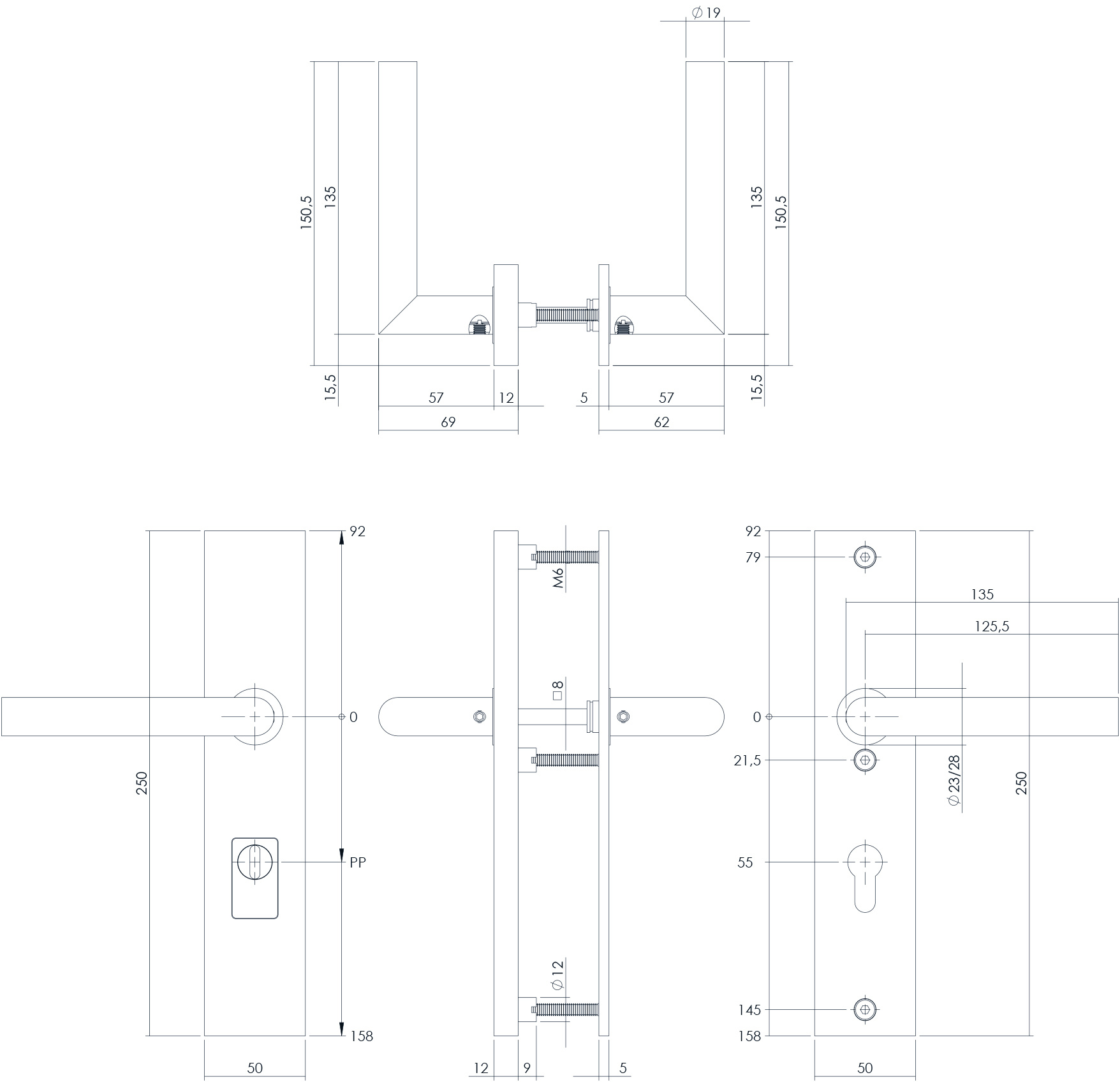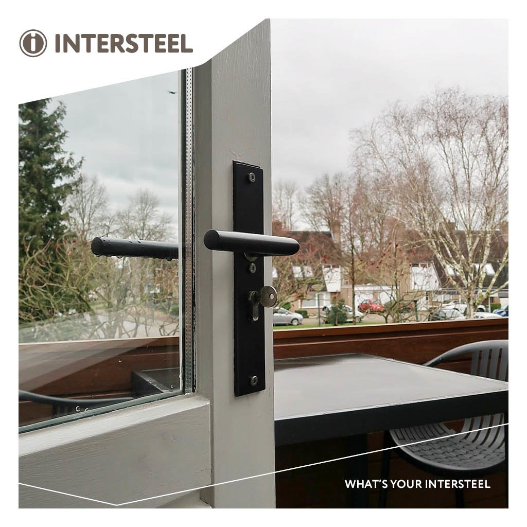 This rectangular set of back door fittings is equipped with extra protection against burglary and is SKG*** approved . This set has a matching door handle on both sides.