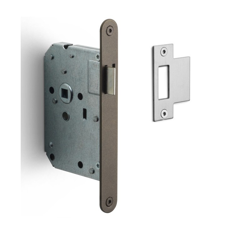 You can choose a matte stainless steel strike plate or a strike plate in the same finish as the front plate. Make your selection in the scrolling menu at the top right.