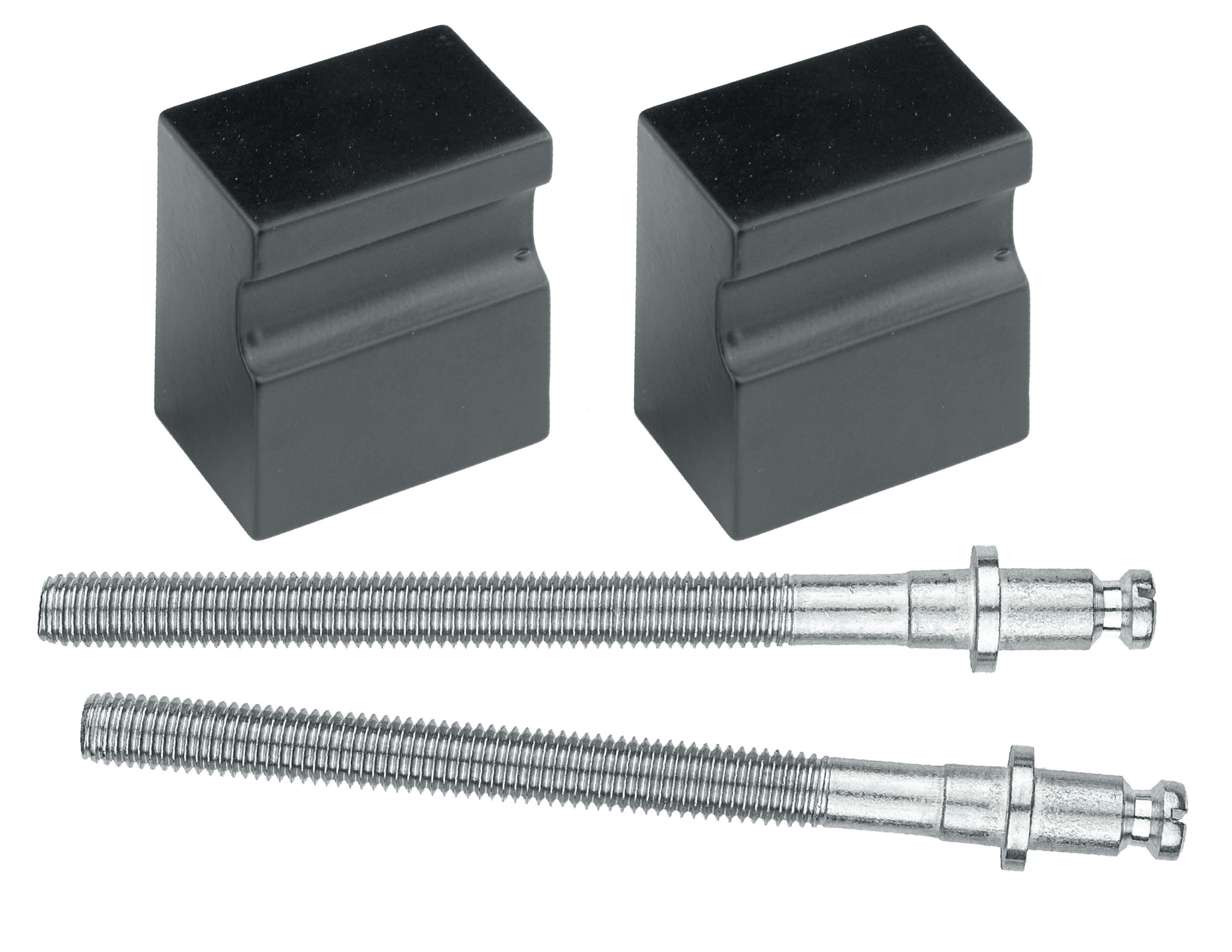 This set consists of 2 fixed black tops which are supplied including mounting materials (2xM10) for a door thickness of 30mm-100mm. You can shorten these fasteners to suit your door thickness.