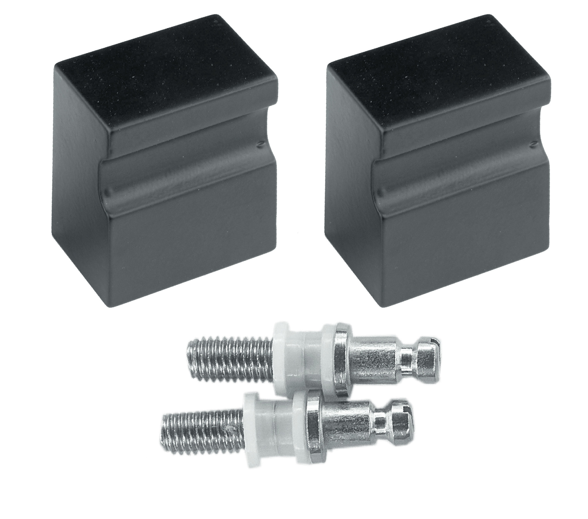 This set consists of 2 fixed black tops which are supplied including mounting materials for a glass door. . The 2 mounting points are 20mm apart and ensure a secure attachment. The drilling facility for these tops is 13mm.