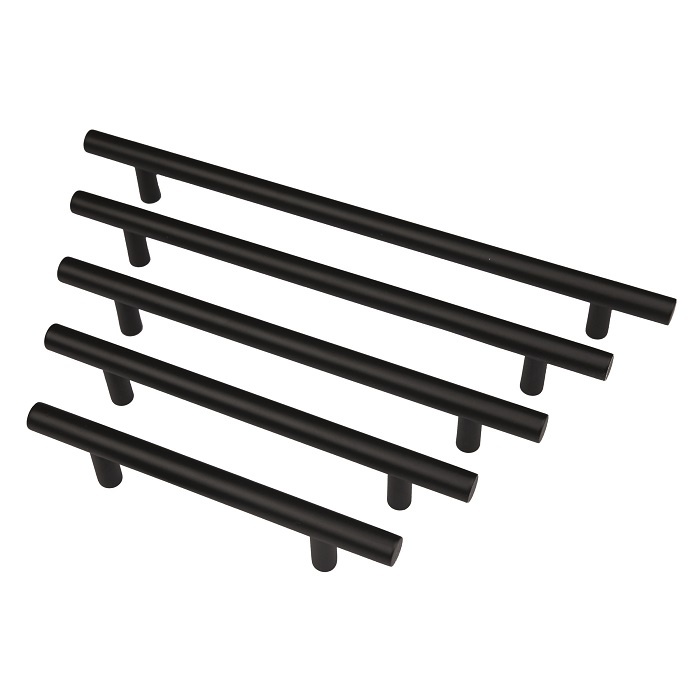 This black T-shaped stainless steel furniture handle is round and has a diameter of 12 mm.