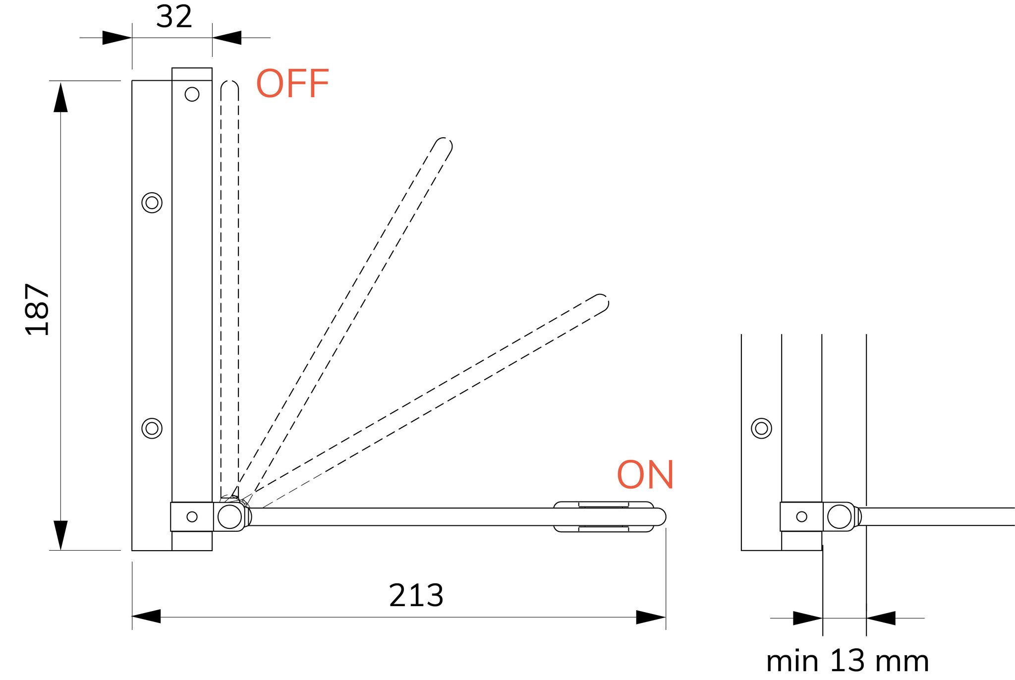 If you do not want to use the door closer for a while, it can easily be switched off with one movement. The door closer has been tested without any problems up to 250,000 closures.