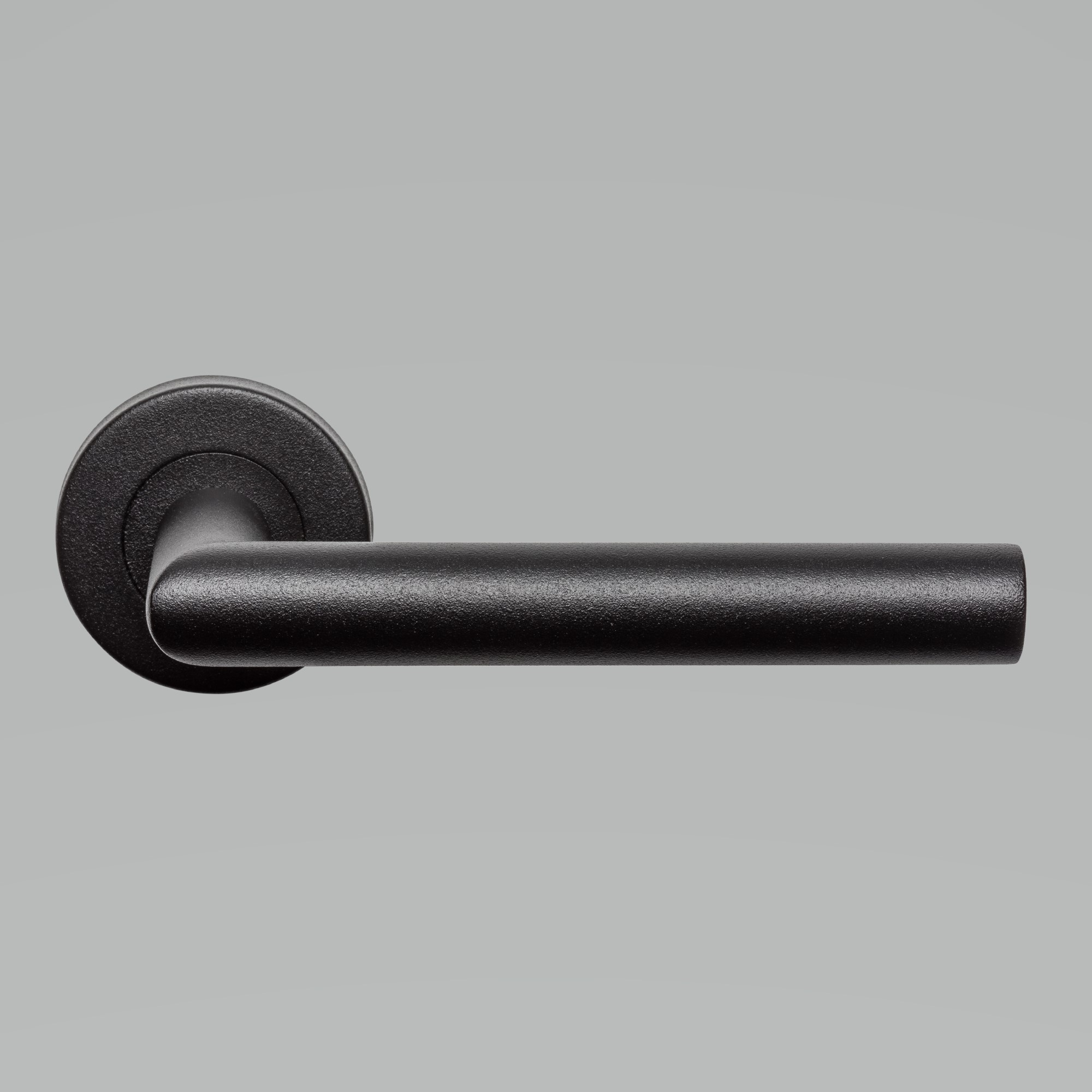 The base of these door handles is stainless steel, after which they have been given a matt black structured paint (RAL9005).