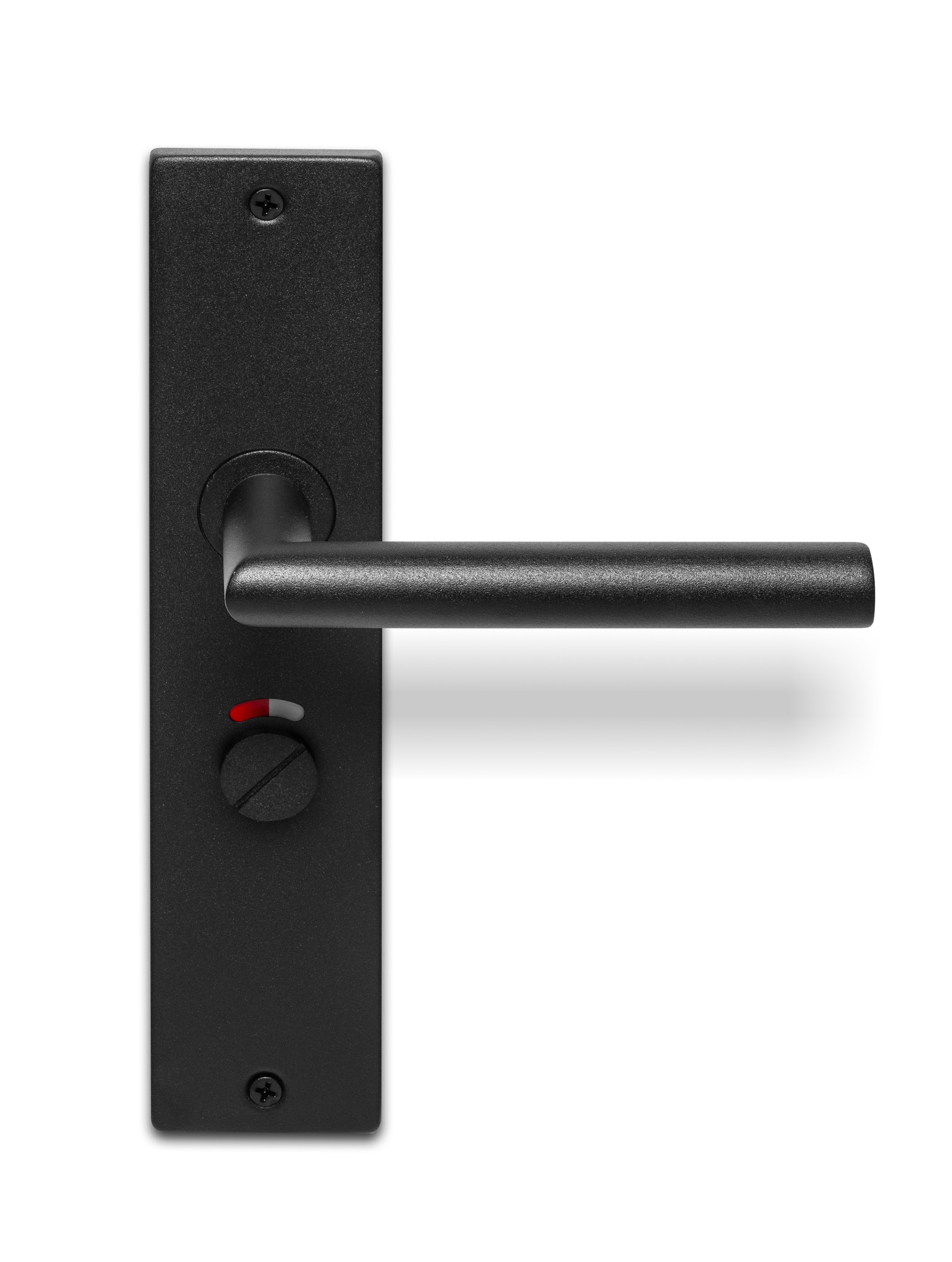 Black Jersey door handles on a long rectangular blind shield of 245x53x9mm with textured lacquer