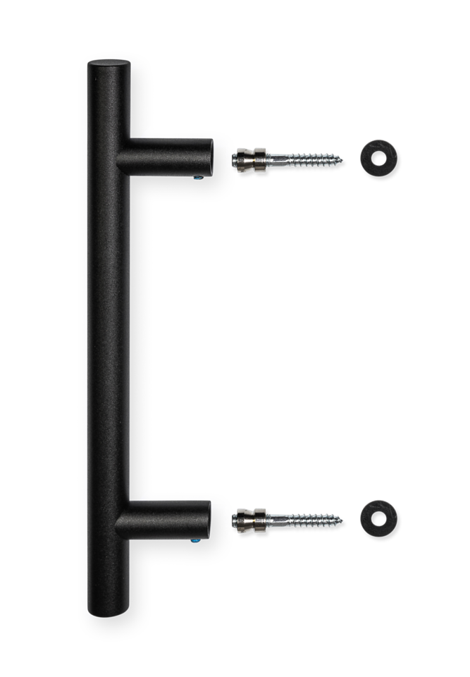 This black door handle is made of stainless steel and has a matte black textured coating. This textured lacquer makes the door handle much more scratch-resistant than the common smooth lacquer.