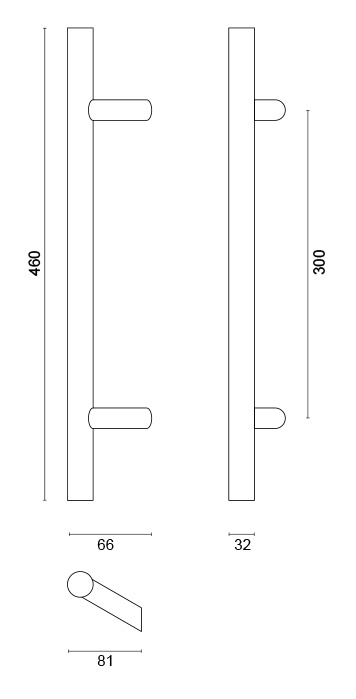 The round door handles are supplied in pairs including mounting material for continuous mounting on a door with a minimum thickness of 30 mm. The supplied bolts can be shortened depending on the thickness of your door.
