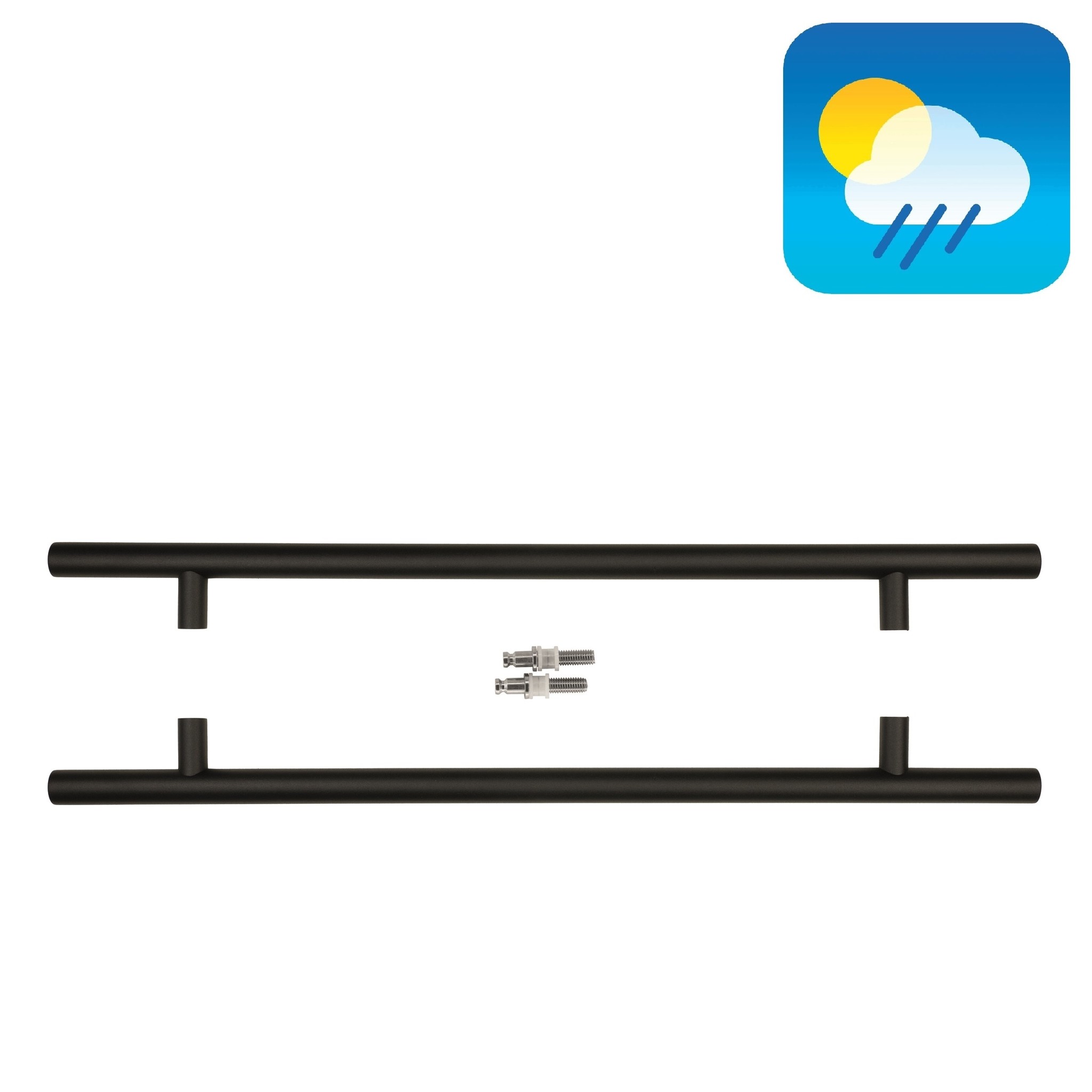Modern door handle that comes straight forward with a black UV resistant textured lacquer and an axis size of 500 mm for interior and exterior doors. | Glass (Exterior) doors
