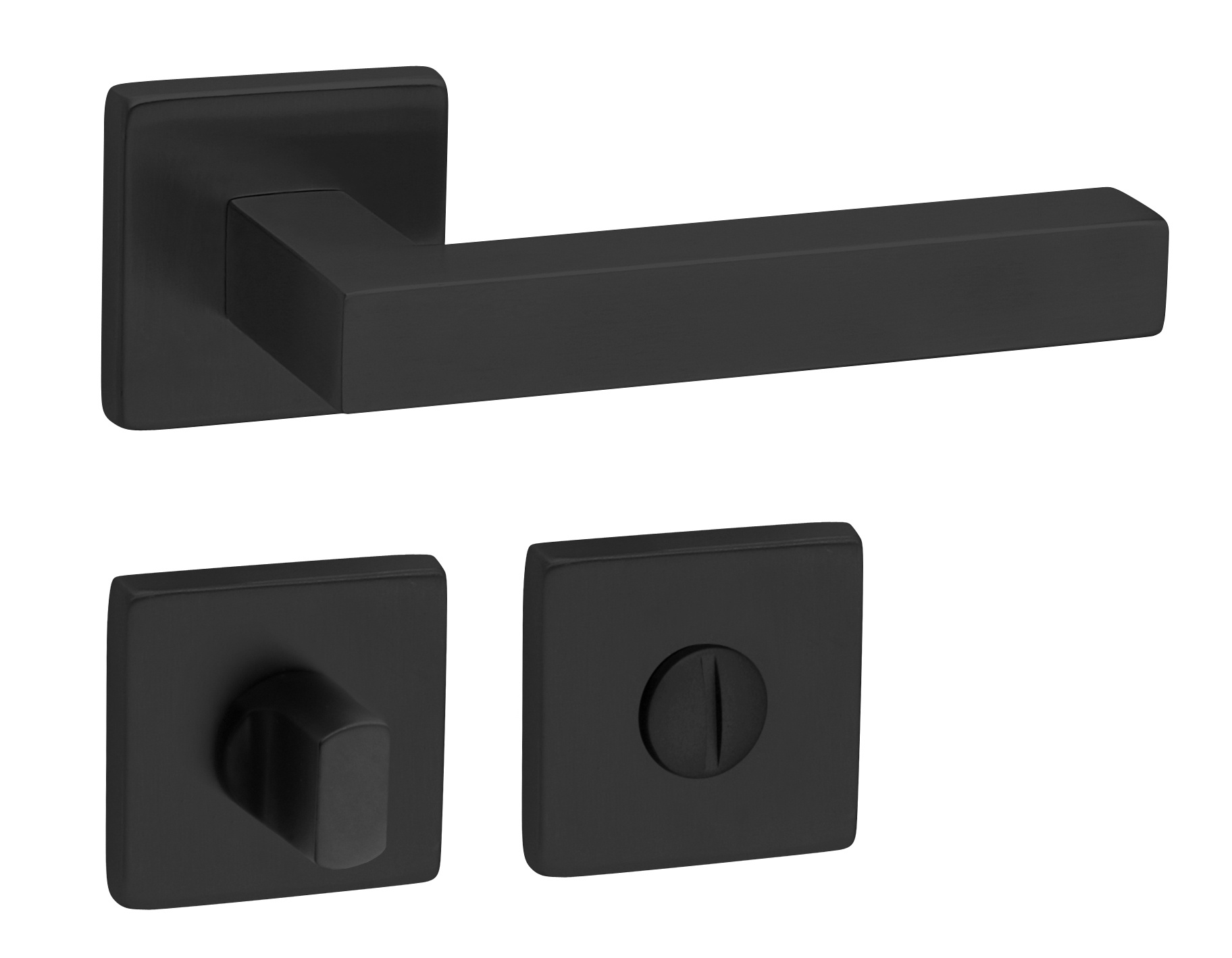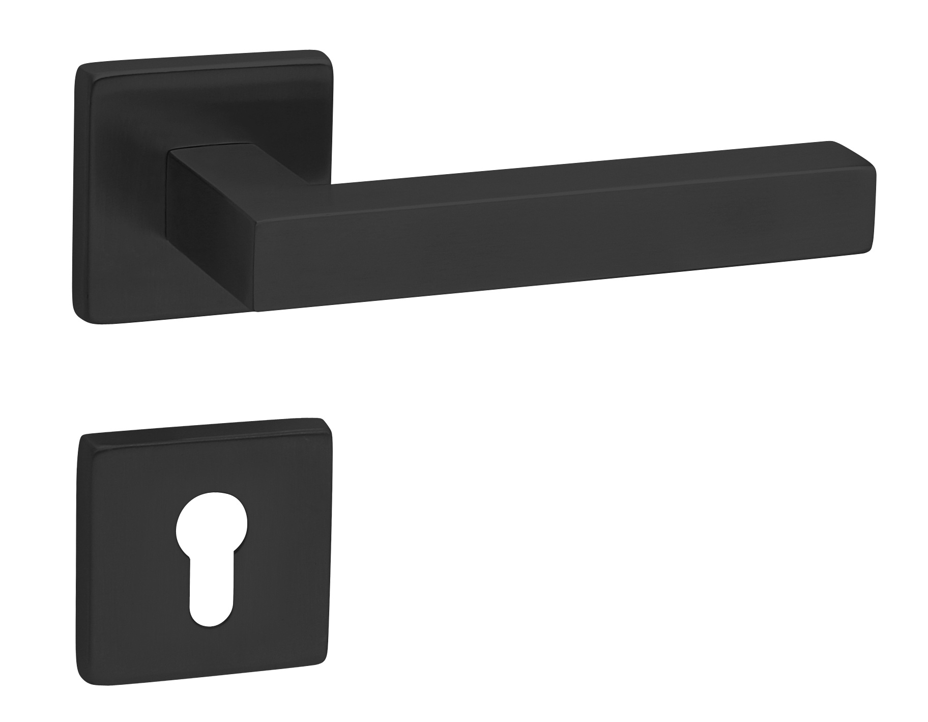 Black door handles Austria 19mm on square rosette available in 3 variants