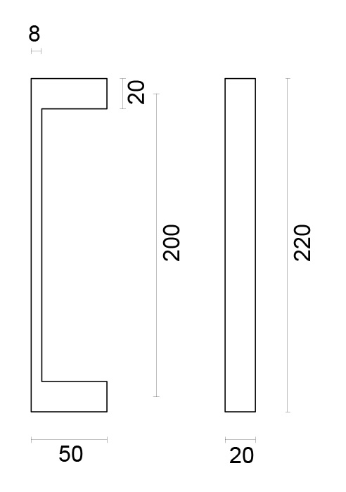 The modern door handles are supplied per pair including mounting material (2x M10x100 mm) for continuous mounting on a door with a minimum thickness of 30 mm. The supplied bolts can be shortened depending on the thickness of your door.