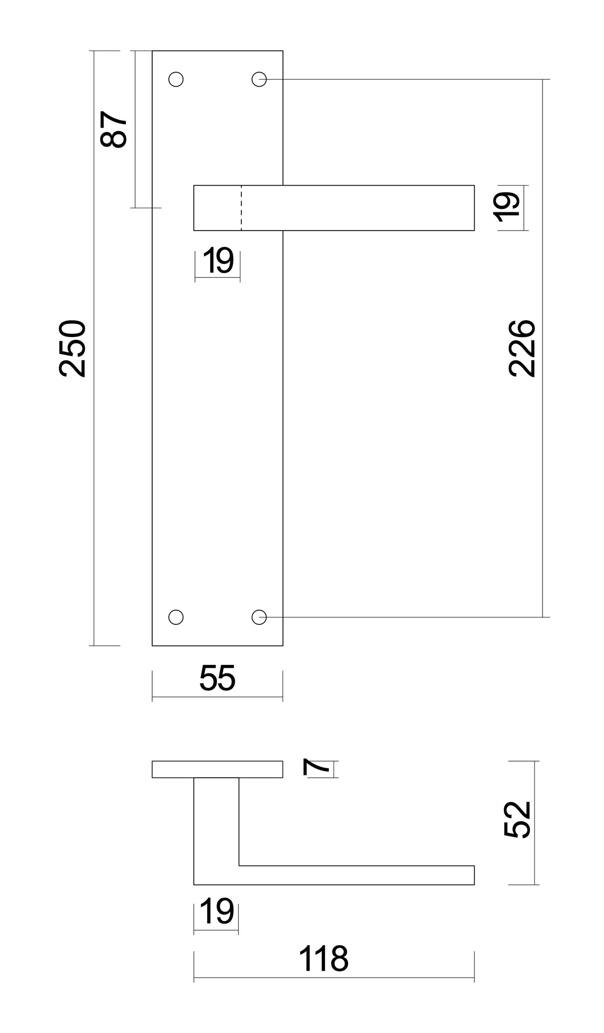 These stainless steel door handles on a shield are available in the following versions: