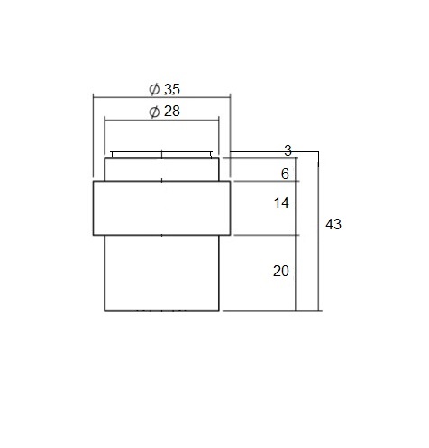 The round door stopper has a diameter of 35 mm, a height of 45 mm and weighs 80 gr.