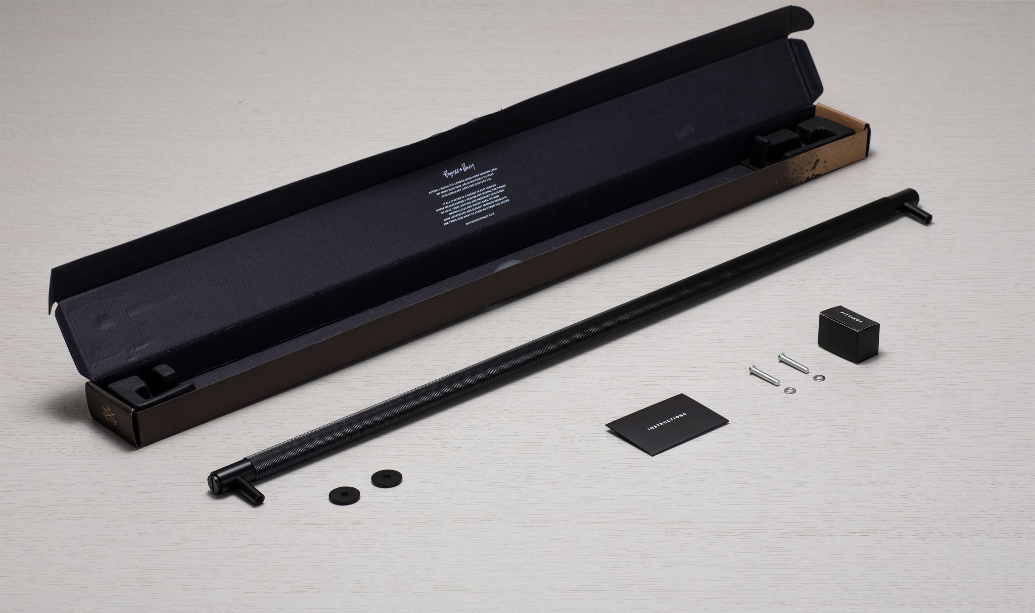 Black cabinet handle from Buster and Punch with a total length of 760 mm and an axle size of 725 mm