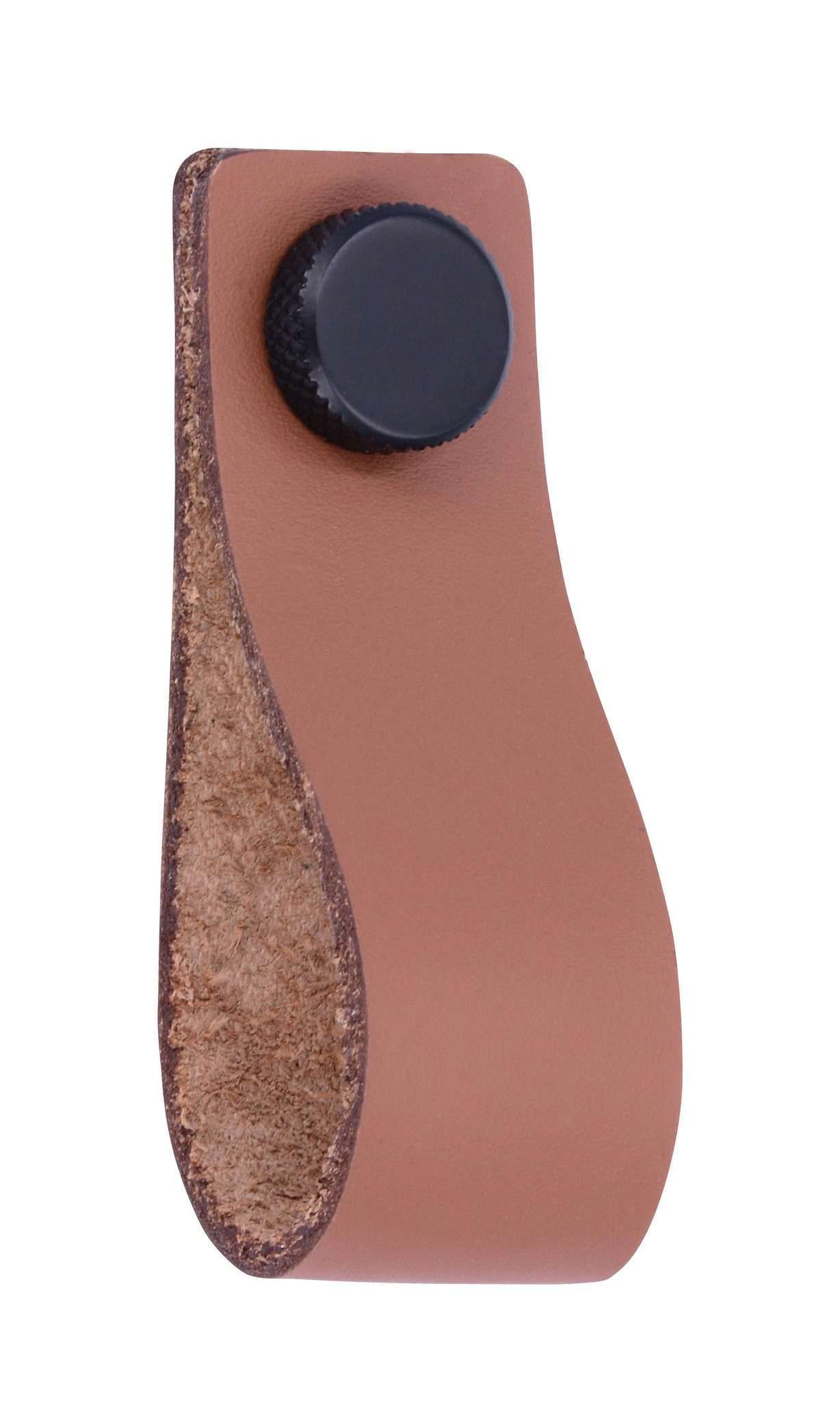 Brown leather loop handle 76x25 with ribbed black button
