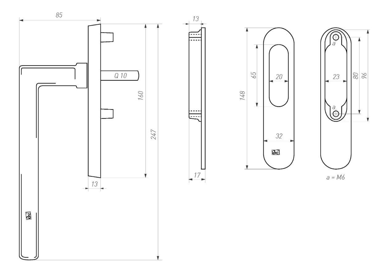 These rough thump lift-slide handles are supplied per set with a blind sliding door bowl, so without a cylinder opening. The two supplied bolts for continuous mounting in the bowl are 100 mm long. It is therefore possible that these have to be shortened depending on the door thickness on which they are mounted.