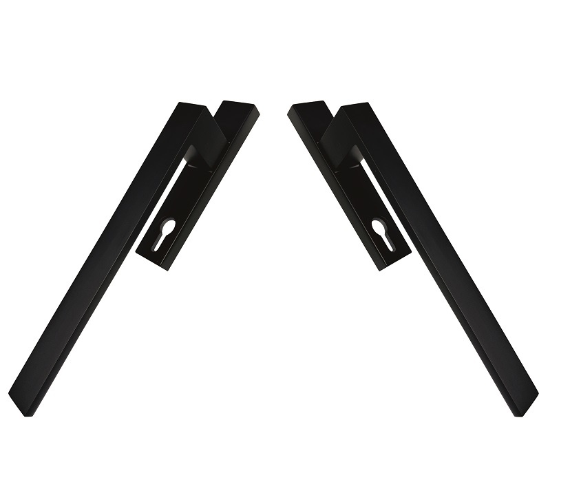 Pair of COSMIC lift/slide door handles in black with cylinder opening