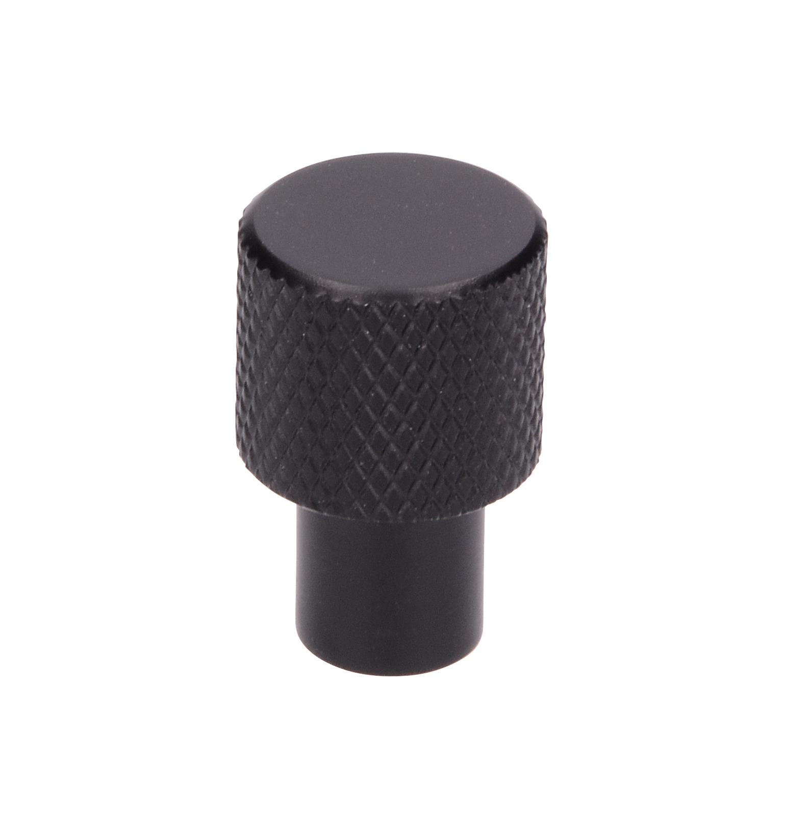 Matt black round furniture knob Ø 16 mm made of aluminum with a cross-ribbed pattern