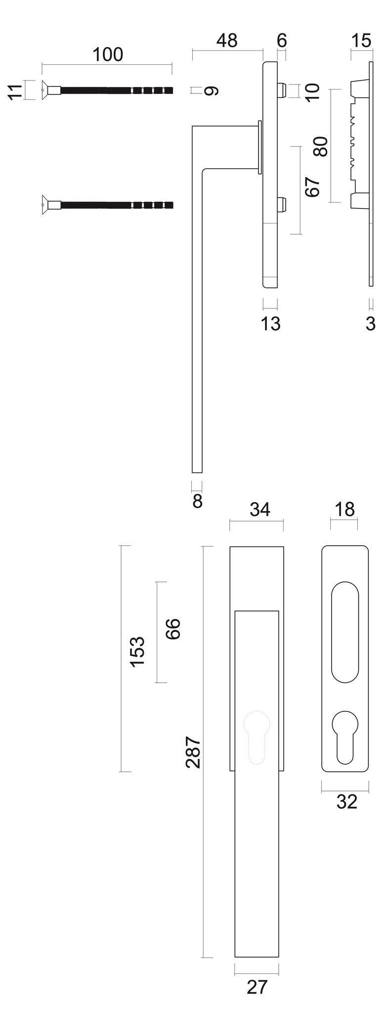 This combined lift/slide door system is specially designed for sliding doors. On one side there is the trade and on the other side a sliding door bowl, both of which have an opening for a cylinder lock.
