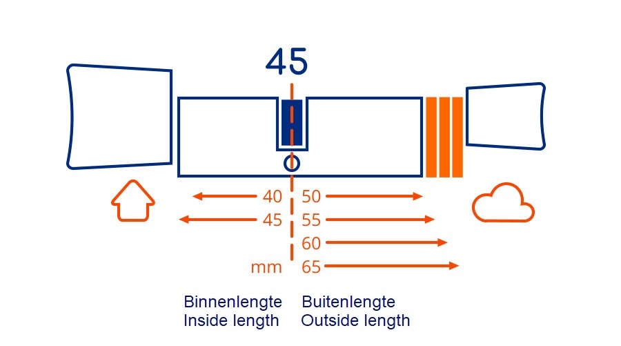 The BOLD cylinder is suitable for any door thickness. Below you can see an overview of which BOLD cylinder you need for your door thickness.