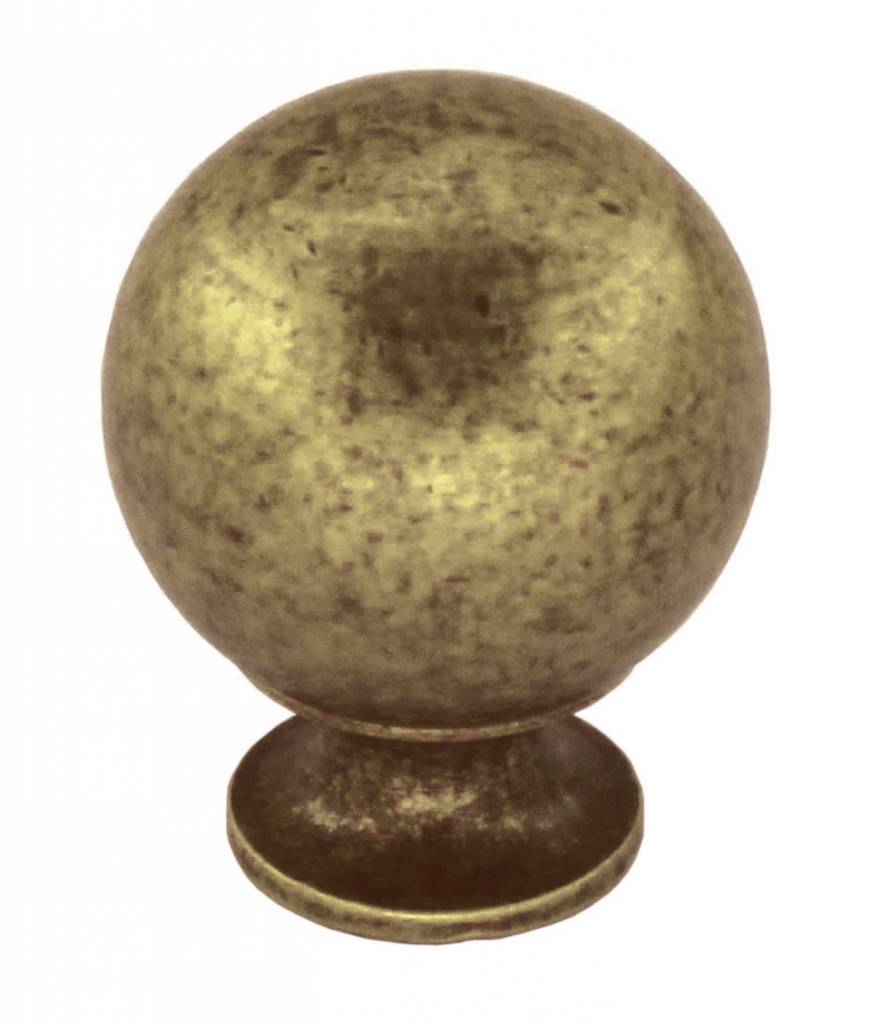 This furniture handle has the shape of a small sphere and is made of old yellow.