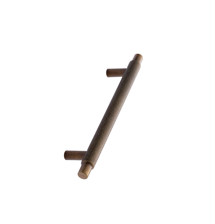 A striking feature of this beautiful furniture handle is the cross-cut pattern on the round handle.