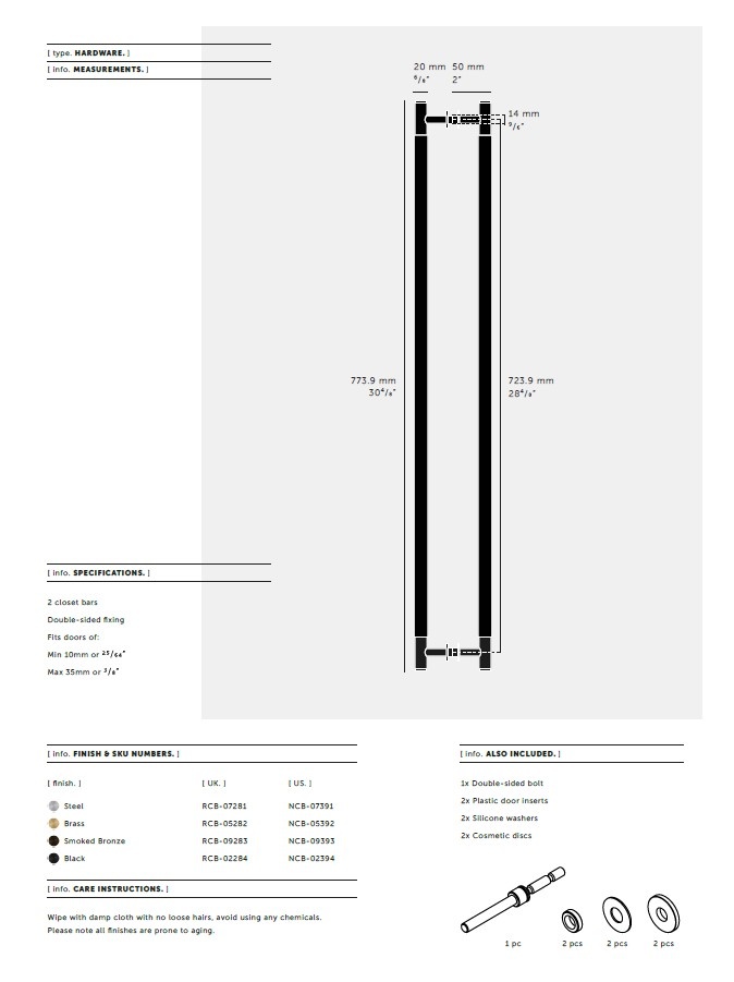 These brass door handles are suitable for a glass or wooden door with a door thickness of 10-60mm.
