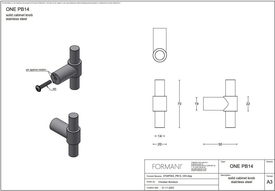These ONE furniture knobs are available in a smaller version (PB9) or the slightly larger version (PB14). Make your choice in the scroll menu at the top right.