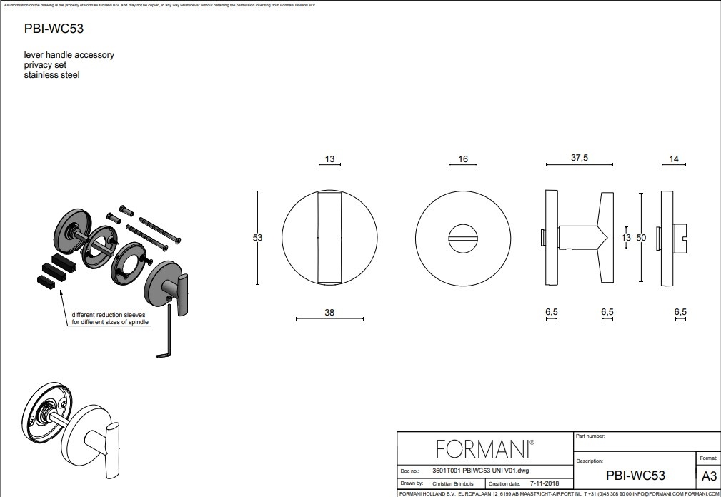 This bronze toilet set has a diameter of 53 mm and is only 6.5 mm thick.