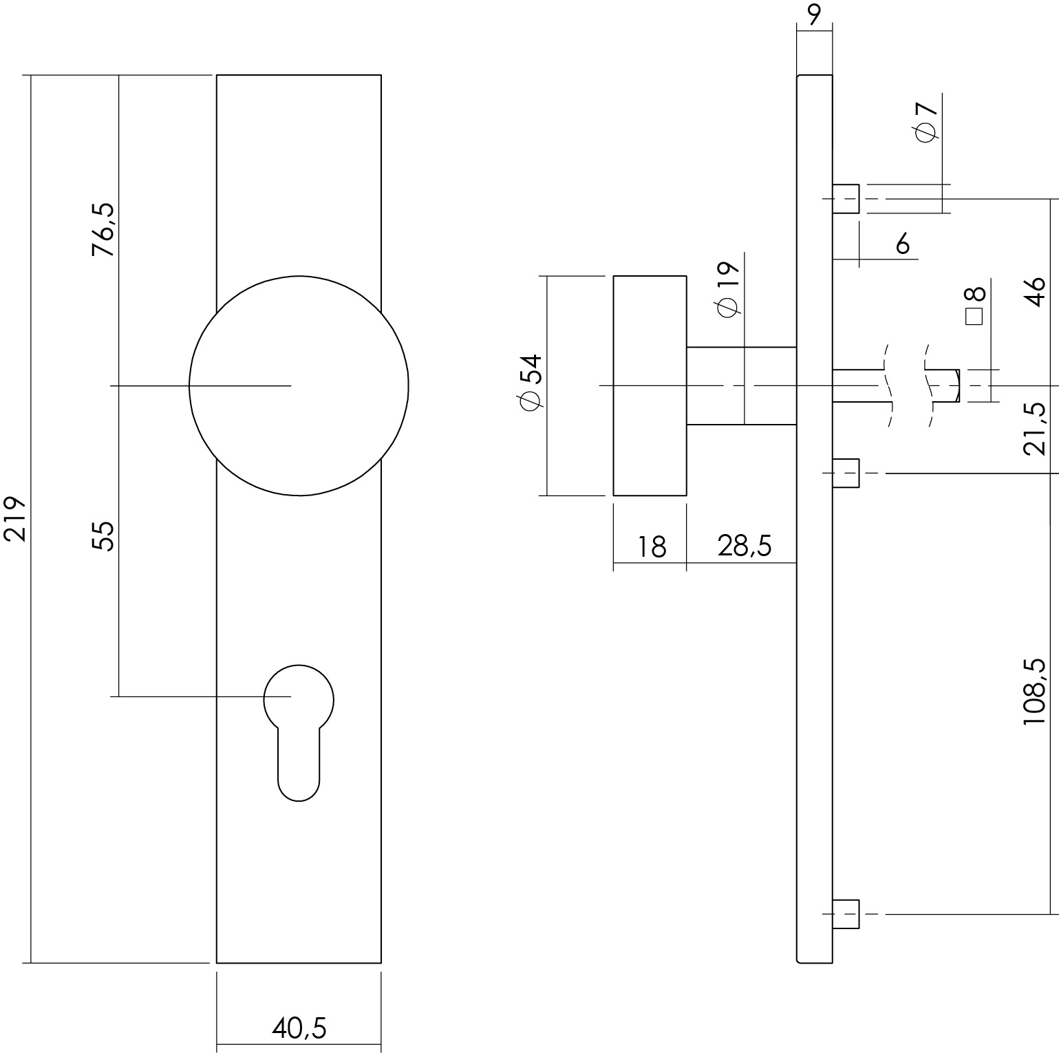 This button on plate is supplied per piece. The advantage of buttons on plate is that they often cover the holes that were previously in the door.