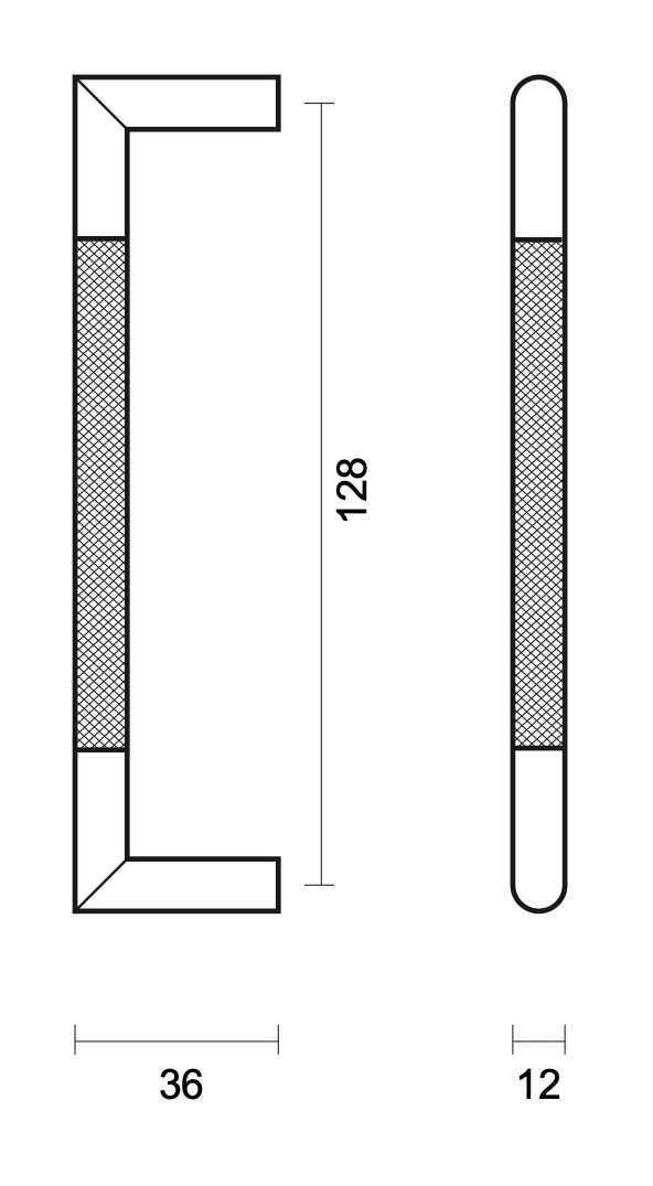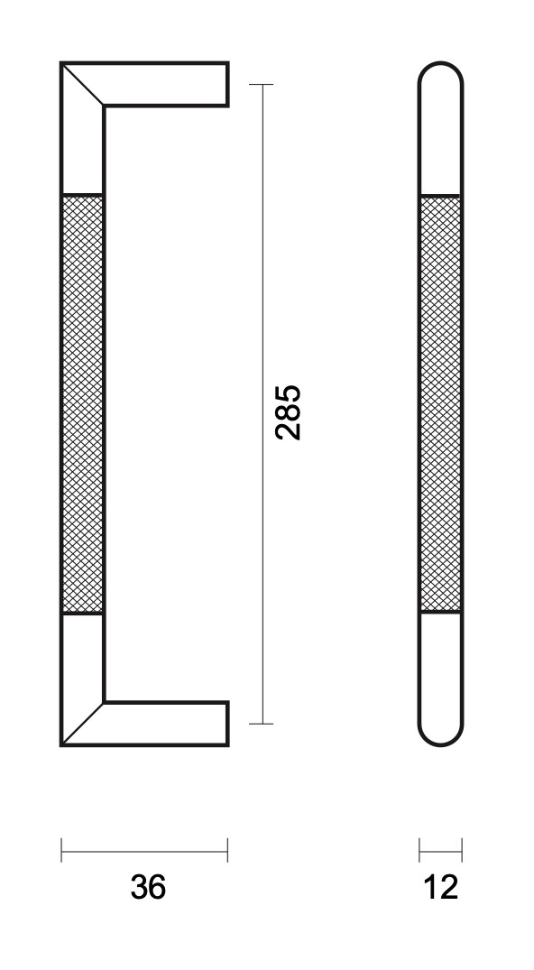 This black U-shaped stainless steel furniture handle with straight edges has a thickness of Ø 12 mm. The cross-cut pattern on the grip gives this furniture handle that little extra you are looking for.