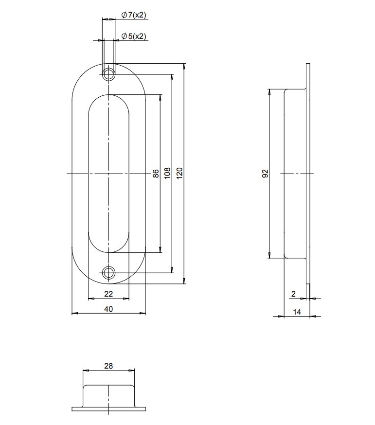Stainless steel Enclosure shell oval 120x40x14mm with 2 screw holes