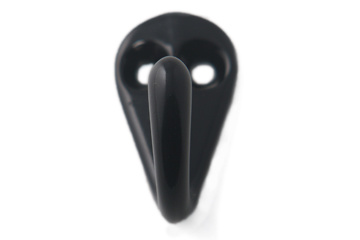 Single black 36 mm high aluminum coat hook with two mounting holes