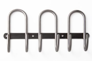 This stainless steel hook will always be an eye catcher, wherever you hang it. The rounding between the hooks is extra nice about this coat rack. There are 4 holes in the back plate for extra firm attachment.