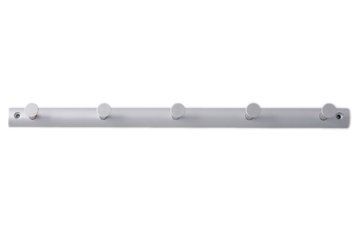 Modern coat rack with 5 coat hooks in aluminum color on a semicircular back plate with a total length of 375 mm