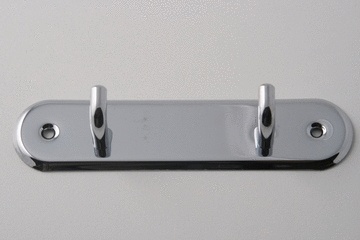 The 2 hooks are on a flat back plate with rounded corners. This gives the brass chrome coat rack something special.