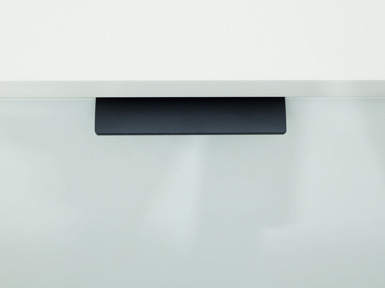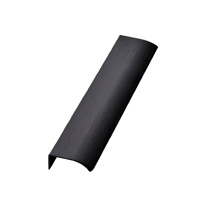 This aluminum furniture handle, finished with a black coating, is already equipped with mounting holes.