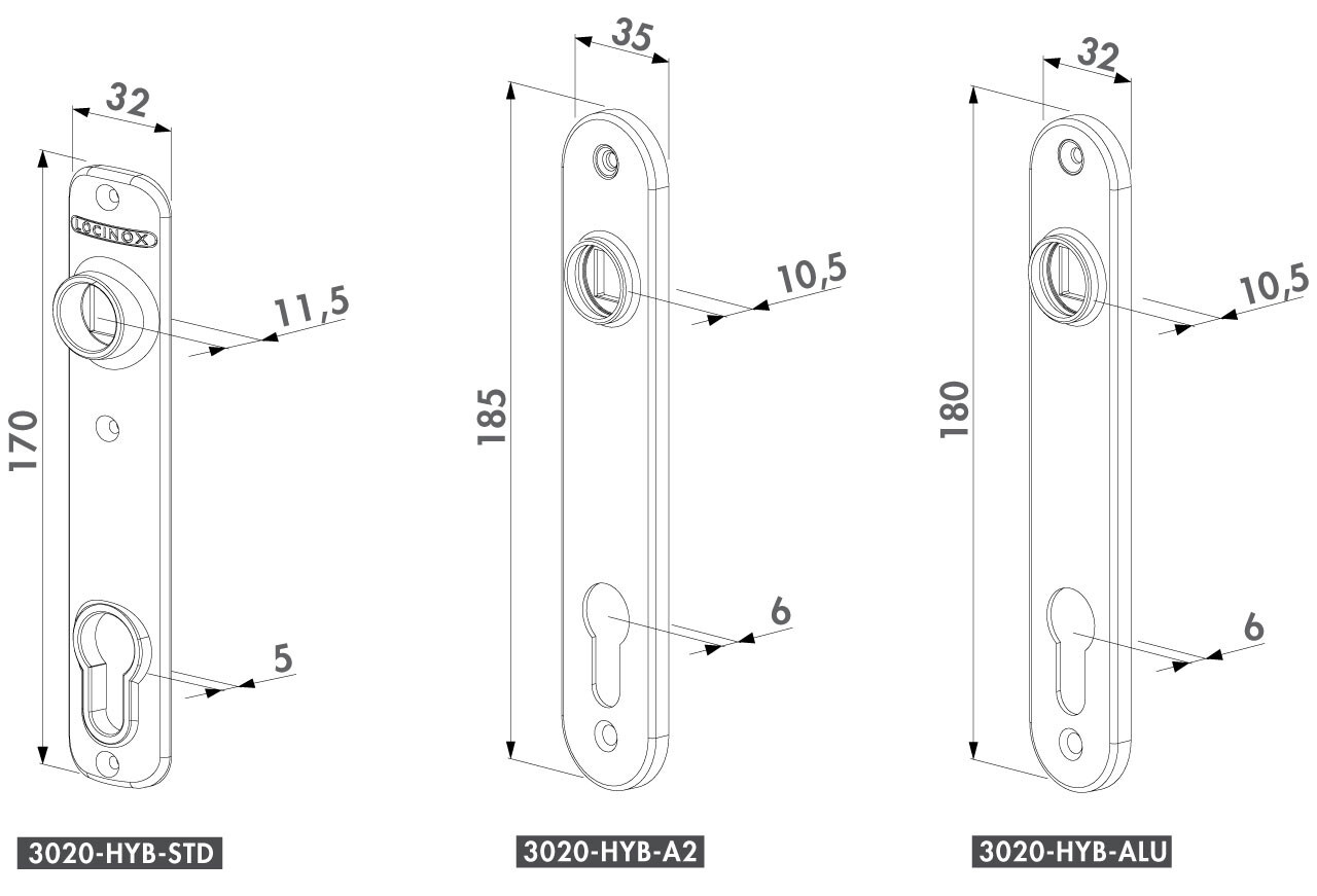 Pair of aluminum cover plates 3020-HYB-ALU to finish your Locinox mortise locks, available in silver or black