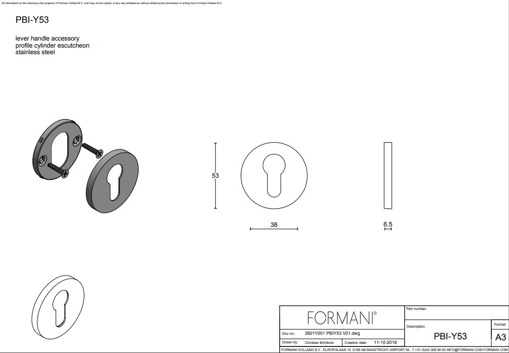 The cylinder plate belongs to the "INC" series from Formani and is made of stainless steel. As a final treatment, this picture is brushed, giving it a matte appearance.
