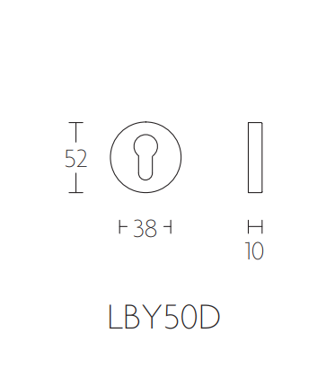The PVD gold cylinder plates LBY50D are supplied in pairs including bottom rosette, finishing rosette and mounting material (4 screws).
