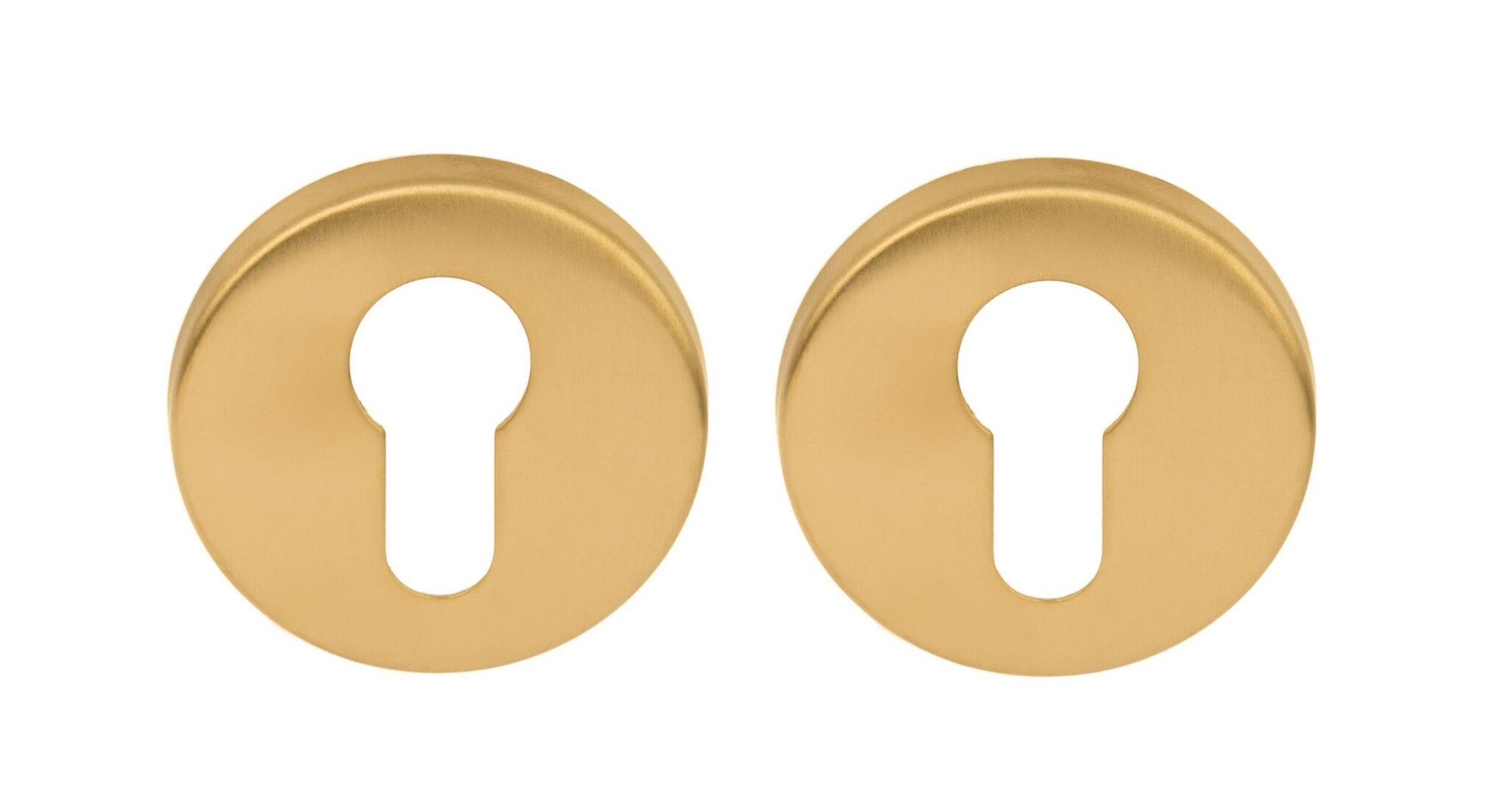 Description Round cylinder plates 50R - Matt gold PVD - matching our door handles NAND, TIBAU and GIADA
