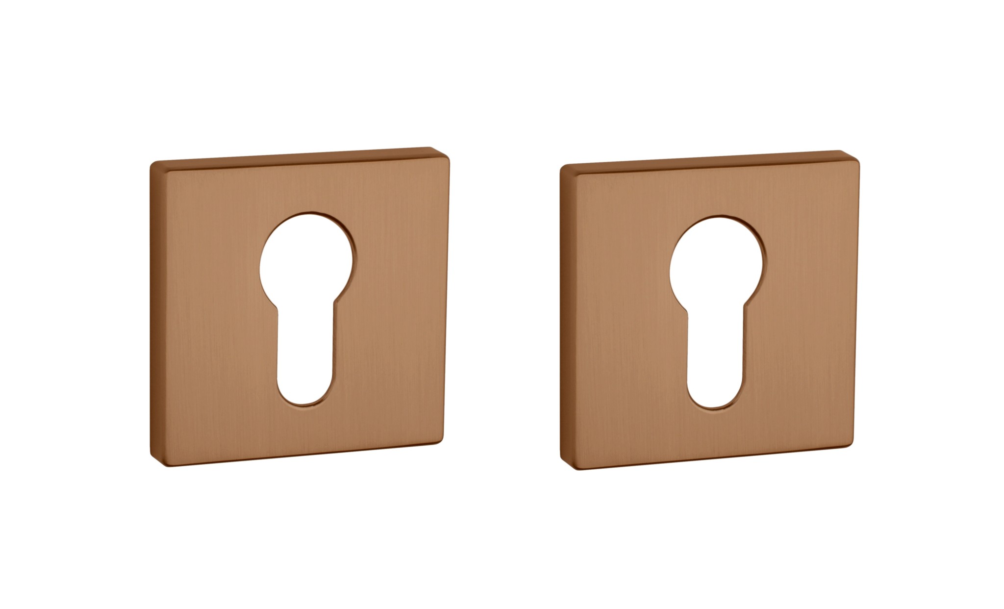 These matt Copper square profile cylinder rosettes have a size of 52x52 mm and a thickness of only 7 mm for an aesthetically pleasing appearance.
