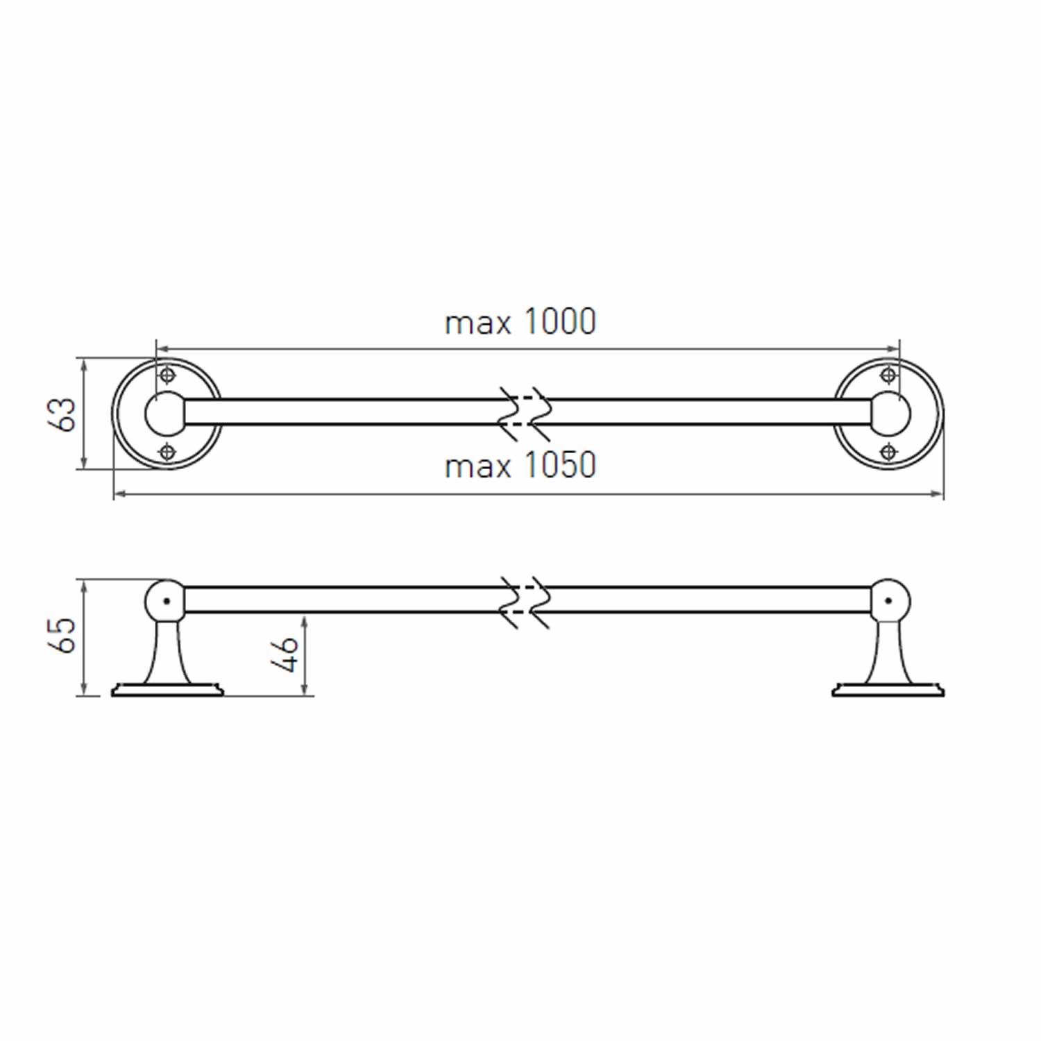 Long bar with two supports, perfect for hanging your towel easily. If the 1000 mm polished raw bronze (RBP) bar is too long, it can easily be shortened. You can also attach open or closed hooks to this bar for extra comfort.