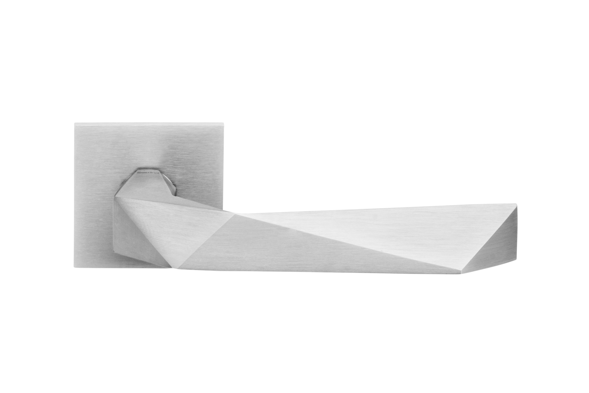These exclusive door handles stand on a square sprung rosettes (50x7mm) and are suitable for interior doors with a door thickness of 38-54mm.